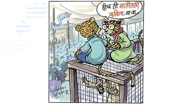 एरवीही अनेक लेखक, बिबट्याने ‘गाऱ्या’वर यावं, तसेच संमेलनाच्या मांडवात येतात. त्यांनीही सावध राहावं. एकंदरित मराठी साहित्याच्या इतिहासात प्रथमच सर्पमित्र आणि बिबटे प्रतिबंधक वनकर्मचाऱ्यांचा आपत्कालीन कक्ष संमेलनस्थळी उभा राहातो आहे. पुंगी, पुस्तकं, पुढारी आणि पिंजऱ्यांच्या या संमेलनाला तुम्ही येणार ना? यायचं हं…कुणीही नाही म्हणायचं नाही!