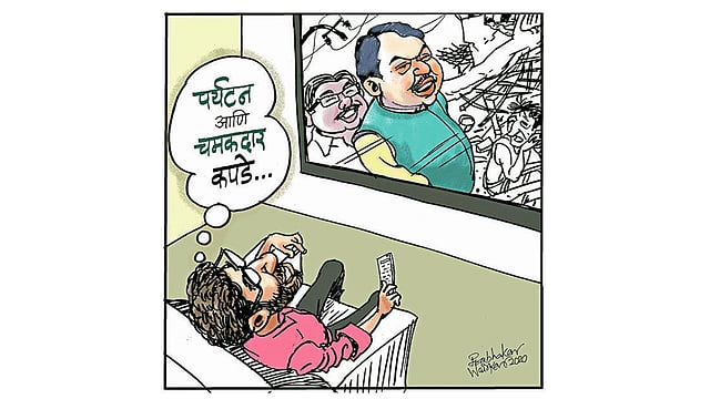 विक्रमादित्य : (उत्साहाने) मी कालच म्हणालो की हे अपोझिशनवाले नुसतं टूरिझम करताहेत! हेल्थ आणि डिझास्टर टूरिझम!! जिथे जिथे प्रॉब्लेम आहे, तिथे तिथे नेमके मास्क लावून हजर!! कमाल आहे ना देवेंद्र अंकलची!! एकाच दिवसात किती ठिकाणी फिरतात! सगळं नॉर्मल होतं, तेव्हा इथल्या इथेच फिरायचे, आता कुठे कुठे पर्यटनाला जाऊन येतात! कोसो कॉय जोमतो बोआ त्याँना…आँ?