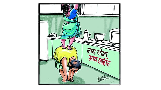 श्री : (निर्वाणीचा इशारा देत) हे बघ, ते नमोजी टीव्हीवर येऊन दरवेळी काहीतरी टास्क देतात! टाळ्या-थाळ्या वाजवणं, मेणबत्त्या लावणं इथवर ठीक आहे! पण ही योगाची कांपिटिशन जरा जास्तच होतं! उगीच अंगाशी खेळ नको!