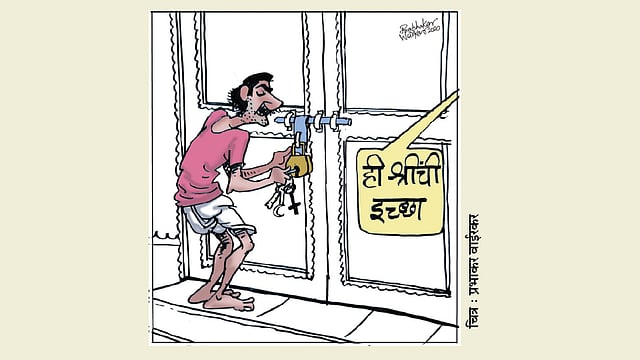 काल रात्री आम्ही झोपलो असता (तसे आम्ही रोज रात्री झोपतो...) पहाटेच्या सुमारास आम्हाला दृष्टांत झाला. ‘देवालये उघडा’ ही श्रींची इच्छा स्पष्टपणे कानी ऐकू आली. जागा झालो. शेजारी चि. विक्रमादित्य उभा बघून त्यांना विचारले की , ‘‘तुम्ही आत्ता काही बोललात का?’’ तर ते म्हणाले, ‘‘तुम्हीच झोपेमध्ये दारं उघडा’’! असं काहीतरी म्हणालात!’’