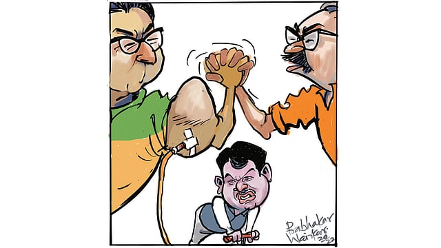 दादू : (वैतागून) जाशील, जाशील!! आधी झेंडा बदललास, मग निवडणूक चिन्हाचं रेल्वे इंजिन बदललंस…आय मीन, त्याची दिशा बदललीस! आता थेट पार्टीच बदललीस!! त्या कमळाबाईशी तुझं काहीतरी गॉटमॅट चाललेलं दिसतंय!!