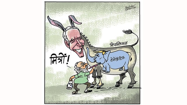 डिअर डोलांडभाई, सतप्रतिसत प्रणाम. श्रीमान मोटाभाई सध्या बंगालमध्ये गेले आहेत. तिथल्या इलेक्सनचा बंदोबस्त होईपर्यंत अवेलेबल होणार नाहीत. व्हेरी व्हेरी सोरी!! बाकी तुमच्या इलेक्सनवर आमच्या ध्यान होता. त्याचा काय हाय के, इलेक्सनमां हारजीत तो च्याले छे! डोण्ट वरी!! जिंकला नाय तरी पण मी फाफडा मुकीश!! ओक्के? आत्ताज जोभाई बायडेनला कोंग्रेच्युलेशनचा मेसेज पाठवला. आवते जान्युअरीमां एने अहमदावाद बुलावीना प्लॅन छे!! त्यांना पण आमचा ढोकळा, फाफडा अने खांडवी बहु गमे छे!! सो, बाय बाय डोलांडभाई. आव जो!