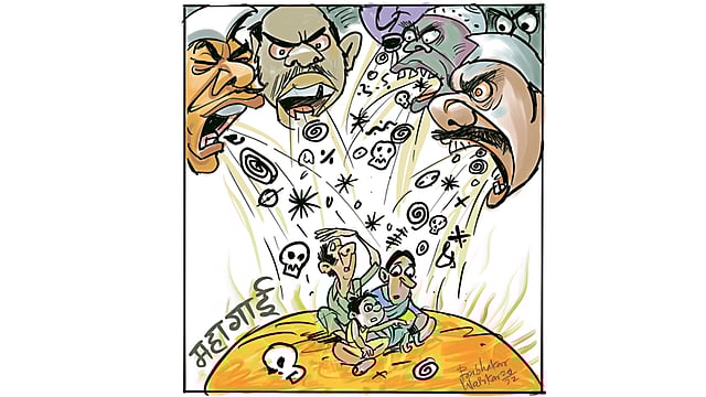 जगणे झाले आगफुफाटा, माथ्यावरती जळते ऊन, गिधाड घेते नभात गिरक्या, गुणगुणते मरणाची धून!