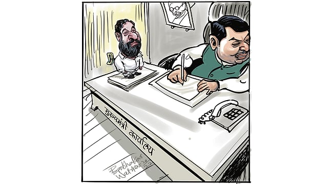 …सध्या आपण दोघेच राज्यकारभाराचा गाडा हाकत असलो तरी कुठेही काम थांबलेले नाही, याची नोंद घेतली जात आहे. तुम्हाला महाराष्ट्राचे कारभारी नेमून प्रत्यक्षात मीच कारभार करतो, असा आरोप विरोधकांकडून केला जात आहे. त्याला अजिबात उत्तर देऊ नका. (मीही देत नाही! ) ‘कारभारी नेमके कोण आहे? तुम्ही की भाईसाहेब?’ असा प्रश्न मला विचारला नेहमी जातो. मी अर्थात तुमचे नाव घेतो. (काळजी नसावी! ) तुम्ही तिथेच (घट्टपणे) बसून राहा! अर्थात त्यासाठी पूर्णवेळ (महाराष्ट्र सदनाच्या लॉबीत) सोफ्यावर बसून राहिले पाहिजे असे नव्हे. क्यांटिनमध्ये जाऊन दोन घास जेवून घ्या, आणि अधून मधून पाय मोकळे करायलाही हरकत नाही. बाकी भेटीअंती. तुमचाच कारभारी क्र. २. नानासाहेब.
