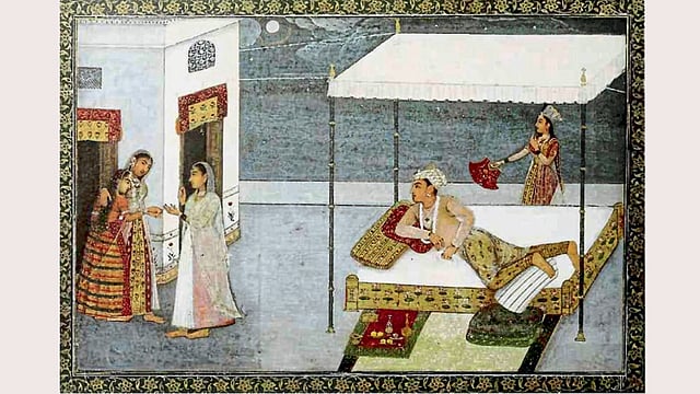 चित्र : वधूची वाट पाहणारा राजपुत्र : हे चित्र अठराव्या शतकातलं आहे. वधूची आतुरतेनं वाट पाहणारा राजपुत्र चित्रकारानं चित्रित केला आहे. उन्हाळ्याच्या रात्री पौर्णिमेच्या शीतल प्रकाशात हा राजपुत्र संगमरवरी सज्जामध्ये तिची वाट पाहत आहे. तरुण आणि लाजाळू वधूचं उत्कृष्ट वर्णन या चित्रात आढळतं. वधूची नाजूक आणि कोमल शरीरयष्टी, अलंकारयुक्त वस्त्रे आणि रुबाबदार व्यक्तिमत्त्वाचा राजपुत्र या दोघांच्या हावभावातून श्रृंगार रसाचा प्रत्यय येतो.