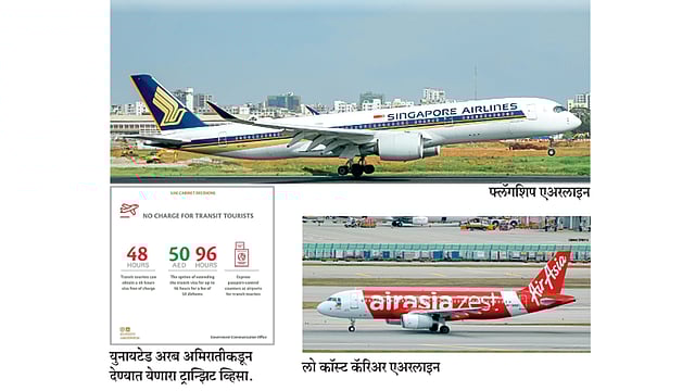 ज्याप्रमाणे विमान कंपन्या पर्यटकांना विमान प्रवासासाठी उद्युक्त करत आहेत, त्या पद्धतीनेच स्वतःचा देश पर्यटन केंद्र बनावा, या उद्देशाने विमान कंपन्यांच्या मदतीने अनेक देशसुद्धा प्रयत्नशील आहेत. याचं उदाहरण म्हणजे, देशांकडून ट्रान्झिट किंवा स्टॉप ओव्हर सुविधा उपलब्ध करून देणं. एअर अस्तानाकडून कझाकस्तानची राजधानी अस्तानामध्ये, इथोपियन एअरलाइनकडून अडीस अबाबा इथिओपियामध्ये, ओमान एअरकडून मस्कतमध्ये ही उदाहरणं आहेत स्टॉप ओव्हरची, ज्यामध्ये फुकट किंवा माफक किमतीत पंचतारांकित हॉटेलमध्ये आपल्याला १-२ रात्र थांबून त्या शहराचा झटकन दौरा करता येतो. युएईचा व्हिसाचा खर्च ७५०० रुपयांपर्यंत येतो; पण जर तुम्ही दुबईमार्गे किंवा अबुधाबीमार्गे युरोप किंवा अमेरिकेत अथवा पुढे इतर देशात जाणार असाल, तर या देशांच्या इतिहाद आणि एमिरेट्स या एअरलाइन्सकडून ४८ ते ९६ तासांचा व्हिसा दिला जातो, जो फक्त १२०० रुपयांना उपलब्ध आहे.