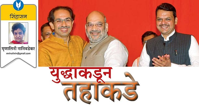 अचानक दौरा आटोपता घेऊन एके दिवशी फडणवीस आणि चंद्रकांतदादा मातोश्रीवर दाखल झाले. तहाचा मसुदा निश्चित होत होता. जाहीर सभांत भान सोडून बोलणारे उद्धव ठाकरे मागण्यांवर ठाम होते म्हणे. लोकसभेसाठी युती सोपी होती. पालघरच्या जागेचा हट्ट शिवसेना सोडत नव्हती. हा विषय अमित शहा यांच्या दरबारात गेला म्हणे. बाहेरून आणलेले राजेंद्र गावित यांनी भाजपला सावरलं होतं. बहुजन विकास आघाडीला या निवडणुकीत कॉंग्रेस-राष्ट्रवादीनं पाठिंबा दिला, तर जागा जाईल असा कयास असल्यानं भाजपनं सुज्ञ निर्णय घेत ती जागा सोडली असावी, असं म्हणतात. घटक पक्षांची जबाबदारी घ्यायला शिवसेना नकार देत होती. मोदींची अश्वमेध यात्रा अन्य कुठं अडकली तर या शक्यतेची दखल घेण्याची मदार उत्तर प्रदेश, महाराष्ट्र अशा खासदारसंख्येत बड्या असणाऱ्या राज्यांवर. शिवसेनेला नाराज करायचं नाही, असं धोरण ठरलं. विधानसभेच्या जागा हा फार मोठा प्रश्न होता- खरं तर अद्यापही तो तसाच आहे. "आपलं काय ते बोला,' या बाण्यातून मार्ग काढण्यासाठी भाजपनं घटक पक्षांच्या जागा सोडून उरलेल्या जागा वाटू, असा प्रस्ताव ठेवला. तो शिवसेनेनं मान्य केला. या बैठकीपूर्वी संजय राऊत यांनी एकत्र येणं म्हणजे शक्तीऱ्हास असल्याचा मुद्दा मांडला; पण तो पक्षनेतृत्वानं केवळ ऐकून घेतला. राऊत यांचा आक्रमक पवित्रा पक्षात धुगधुगी पसरवत असल्यानं त्यांच्या लेखनाधिकाराची मर्यादित मान्यता तशीच ठेवण्यात येणार आहे. सन 1995 चं सरकार शिवसेना-भाजपचं होतं. सध्याचं भाजप सरकार शिवसेनेच्या टेकूचं आहे. या सत्तेत शिवसैनिकांचा जीव रमत नाहीये; पण लोकप्रतिनिधींना त्याचं मोल कळत असल्यानं तहाला नेतृत्वानं मान्यता दिली. भाजपची लोकसभा गरज ताडून विधानसभेच्या जागांत अर्धा वाटा शिवसेनेनं खेचून आणला आहे. सन 2014 मध्ये 138 जागा जिंकणाऱ्या भाजपला फार तर 140 जागा लढता येणार आहेत. 63 जागा जिंकणारी शिवसेना नंतर काही शक्तीकेंद्रांचे अपवाद वगळता राज्यात पीछेहाट अनुभवते आहे. त्यांनाही 140 जागा मिळणार, हे एका अर्थानं घबाड आहे. अर्थात सन 2014 मध्ये "मिशन 151'ची आस असलेल्या आदित्य यांच्यासाठी हा आकडाही तडजोड आहे. शिवसैनिक या तडजोडीकडं लक्ष देत नाहीत. शिवसेना हा मनस्वी लोकांचा पक्ष आहे. त्यांची सत्ताकांक्षा त्यांच्या पक्षातलं नेतृत्व पूर्ण करू शकत नाही. हे नेतृत्व फक्त बोलतं अन् मोदीप्रकाशित असण्यात धन्यता मानतं हे शिवसैनिक जाणतात. राज्यव्यापी होण्याची क्षमता असलेले मनसबदार आज पक्षाकडं नाहीत. भाजप कार्यकत्यांना आता सत्तेची गोडी लागली आहे. मोदी यांचं पुन्हा पंतप्रधान होणं केवळ त्यांच्या वैयक्तिक प्रतिष्ठेचा नव्हे, तर पक्षाच्या विचारधारेच्या इभ्रतीचा प्रश्न आहे. हा कार्यकर्ता मुळात समंजस आहे. श
