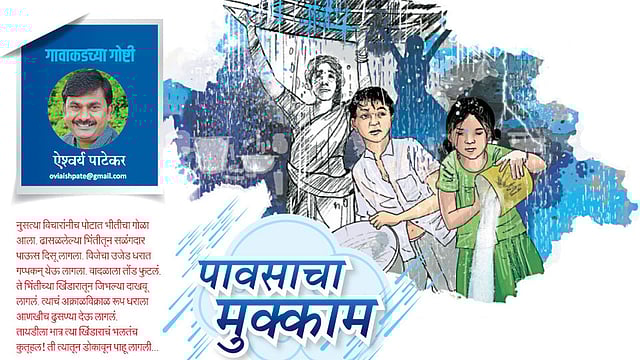 पावसाचीसुद्धा आवडीची घरं ठरलेली असतात! दर पावसाळ्यात तो त्या घरांत हमखास मुक्काम करतो. आमच्याही घरी पाऊस मुक्काम करून गेलाय. आता या गोष्टीला खूप वर्षं उलटून गेलीत; पण मला अजूनही आठवतं...माझी आई, थोरली बहीण आक्का, तिच्याहून लहान आणि माझ्याहून मोठी बहीण तायडी आणि तायडीनंतरची पमी अन् सर्वात धाकटा मी...आम्ही केला होता पावसाचा पाहुणचार. त्याचीच ही गोष्ट!