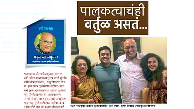 पालकत्व हा जीवनातील वर्तुळाचा एक भाग आहे. जीवन अव्याहतपणे सुरूच असतं. तुम्हीच कधीतरी पाल्य असता, मग तुम्ही पालक होता. पुन्हा वय झाल्यानंतर तुमच्यात शारीरिक अक्षमतेमुळं एकप्रकारचं पाल्यत्व येतं, तोपर्यंत तुमचा पाल्य हा पालक झालेला असतो. हे वर्तुळ सतत सुरू असतं. या वर्तुळाचा भाग म्हणून तुम्ही काही काळासाठी पालकत्व स्वीकारलेलं आहे. त्या काळात जी जबाबदारी आली आहे, ती जास्तीत जास्त प्रामाणिकपणे आणि जसं शक्य असेल त्याप्रमाणे उत्तमरीत्या पेलण्याचा प्रयत्न करणं, हे मी 'पालकत्व' मानतो. माझ्याकडं पुस्तकांचा मोठा खजिना आहे, मी भरपूर वाचतो. तीच सवय मुलांनाही आहे. ती इंग्रजी माध्यमातून शिकलेली असल्यानं इंग्रजी पुस्तकं जास्त वाचतात. पण, त्यांनी मराठीपण वाचावं, असा माझा आग्रह असतो. सध्याच्या इतर मुलांच्या तुलनेत ती बऱ्यापैकी मराठी वाचतात. त्यांची गाण्याची आवड काळानुसार वेगळी असू शकते; पण आमच्या घरातील संस्कार मात्र त्यांच्यावर नक्कीच आहेत. घरात कोणी मोठी माणसं आली, तर दोन्ही मुलं त्यांना स्वतःहून वाकून नमस्कार करतात. येणाऱ्यांना आश्चर्य, संकोच वाटतो. ते नको म्हणतात; पण मी सांगतो, "नाही, ही आमच्या घरातील शिस्त आहे आणि दोन्ही मुलं ते करत आहेत, हे उत्तम आहे." मी स्वतः आई होती तोपर्यंत रोज सकाळी घरातून बाहेर पडताना आईला नमस्कार केल्याशिवाय निघत नसे. ही वर्षानुवर्षांची शिस्त आहे, जी पुढच्या पिढीच्या माध्यमातून आजही आमच्या घरात सुरू आहे. संस्कारांचं हे धन पुढच्या पिढीकडं सोपवणं, हा पालकत्वाचा मूळ आधार आहे.