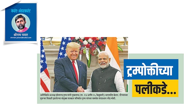 ना मोदींच्या अमेरिकादौऱ्यात भारताच्या हाती काही ठोस लागलं, ना ट्रम्प यांच्या भारतदौऱ्यात. तेव्हा ट्रम्प यांनी अमेरिकेतील इंधनखरेदीसाठी ४० वर्षांकरिता आपल्या सरकारला बांधून घेतलं. आता २१ हजार कोटींची लष्करी सामग्री भारताला विकली. लष्करी सामग्रीसाठी भारतासारखा प्रचंड मोठा ग्राहक रशियाकडून अमेरिकेच्या परिघात यावा हे अमेरिकेचं दीर्घकालीन धोरण आहे. त्यात पुढची पावलं पडत असतील तर अमेरिकेला आणखी काय हवं? अमेरिकेनं देऊ केलेली हेलिकॉप्टर्स आणि अन्य सामग्री अत्याधुनिक आणि भारतासाठी महत्त्वाची आहेच; मात्र त्यातून अमेरिकी उद्योगांना चालना मिळणार आहे. तशी ती मिळताना भारताला कोणतीही सवलत ट्रम्प देत नाहीत. ‘द्विपक्षीय संबंधांत नवं पर्व’, ‘कधी नव्हे इतके दोन्ही देश जवळ आले’, ‘सर्वंकष जागतिक व्यूहात्मक भागीदारी’ वगैरे वर्णनं ठीक आहेत; पण त्यानं वास्तव बदलत नाही.