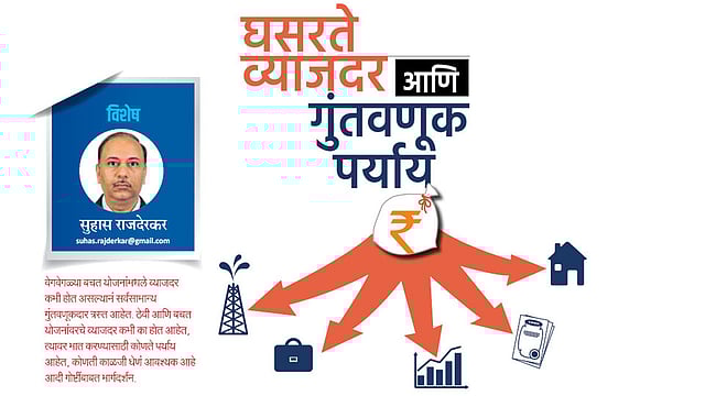 तात्पर्य : सध्याच्या कठीण परिस्थितीमध्ये, केवळ व्याजदर कमी आहेत म्हणून बँक आणि अल्पबचत योजनांमधली सुरक्षित गुंतवणूक सोडून इतर जोखीम असलेल्या गुंवणुकीकडे वळणं चुकीचं ठरू शकतं- कारण इतर गुंतवणुकीमध्ये व्याजदर तर सोडाच; पण तुमचं मूळ मुद्दलदेखील सुरक्षित नसतं. घटत्या व्याजदरांना पर्याय म्हणून, प्रत्येकाच्या जोखीम स्वीकारण्याच्या क्षमतेप्रमाणं वरील पर्यायांमध्ये तज्ज्ञ सल्लागारांच्या सल्ल्यानं गुंतवणूक करणं योग्य होईल.