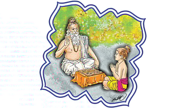 उपनिषद हा वेदांच्या अखेरच्या रचनेतील ग्रंथ. शब्दश: गुरूजवळ बसून मिळवलेली विद्या. उप=जवळ, निषद्=बसणं. ‘समीप उपवेशन’ किंवा ‘समीप बसणं’. कशासाठी आणि कुणी? तर ‘ब्रह्मविद्याप्राप्तीसाठी शिष्यानं (गुरूजवळ) बसणं’. कुणाजवळ बसावं किंवा गुरू कसा असावा? तर जो ब्रह्मप्राप्तीचं शिक्षण देऊ शकेल असा. जो आम्हाला ‘असत्’कडून ‘सत्’कडे घेऊन जाईल, अंधकाराकडून प्रकाशाकडे घेऊन जाईल, मृत्यूकडून अमरत्वाकडे घेऊन जाईल असा गुरू. ‘उप’ हा शब्द, ‘नि’ हा उपसर्ग आणि ‘सद्’ हा धातू यांपासून उपनिषद् हा शब्द निर्माण झाला आहे.