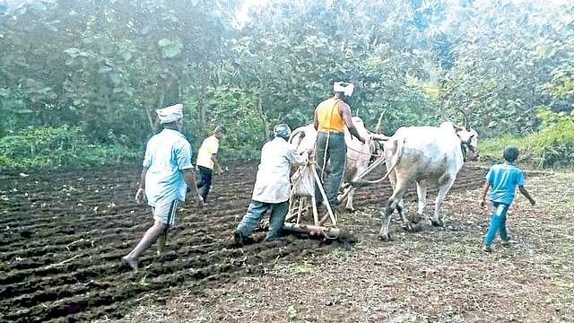 चाफळ (जि. सातारा) : चाफळसह परिसरात काही दिवसांपासून सुरू असलेला पाऊस रब्बी हंगामासाठी चांगला असल्याचे शेतकऱ्यांमधून बोलले जात आहे. वापसा आलेल्या काही ठिकाणी शाळू पेरणीसही सुरुवात झाल्याने बळीराजा रब्बी हंगाम पेरणीच्या कामात व्यस्त दिसत आहे.