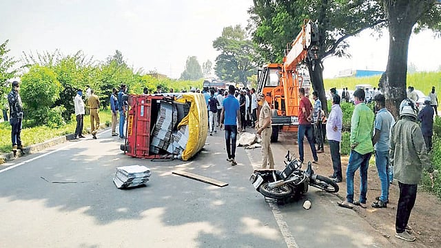 शबाना गौडबादशहा मुजावर (वय 38, रा. कालेटेक, ता. कऱ्हाड) असे अपघातात ठार झालेल्या महिलेचे नाव आहे. अपघातस्थळावरून व पोलिसांकडून मिळालेल्या माहितीनुसार, कालेटेक (ता. कऱ्हाड) येथून मुजावर हे दुचाकीवरून (एमएच 11 एडी 4978) कऱ्हाडकडे येत होते. महामार्गावरून येताना नांदलापूर गावच्या हद्दीत हॉटेल अमराई गार्डनसमोर आले असता, कोल्हापूरवरून मोकळी खोकी भरून कऱ्हाडकडे भरधाव वेगात आलेल्या टेंपोला (एमएच 10 सीआर 5736) अज्ञात ट्रकने धडक दिली. धडकेत छोटा टेंपो महामार्गावरच पलटी झाला. या वेळी मुजावर यांच्या दुचाकीला धडक झाली. धडक एवढी जोरात होती, की शबाना मुजावर यांच्या डोक्याला मार लागल्याने त्या जागीच ठार झाल्या.