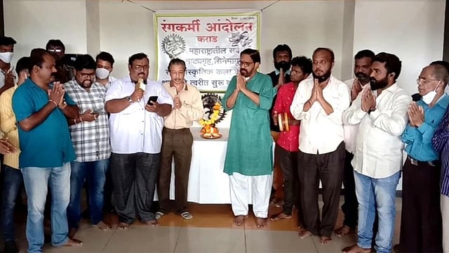 येथील यशवंतराव चव्हाण स्मृतीसदनात कलाकारांनी एकत्र येत नटराजाची आरती केली. त्यानंतर शासनाला नाट्यगृहे, सांस्कृतिक कार्यक्रम (Cultural Events) सुरु करण्याचे आर्त विनवणी केली. यावेळी जुगलकिशोर ओझा, नितीन बनसोडे-करवडीकर, कला दिग्दर्शक वासू पाटील, ओंकार आपटे, प्रदीप हर्षे, प्रशांत कुलकर्णी, नाट्य विक्रेते प्रमोद गरगटे, सुनिल परदेशी यांच्यासह कलाकार उपस्थित होते.