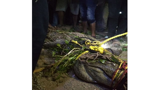 VIDEO : अबब.. दहा फुटी मगर येरळवाडी नदीपात्रात; नागरिकांचा उडाला थरकाप