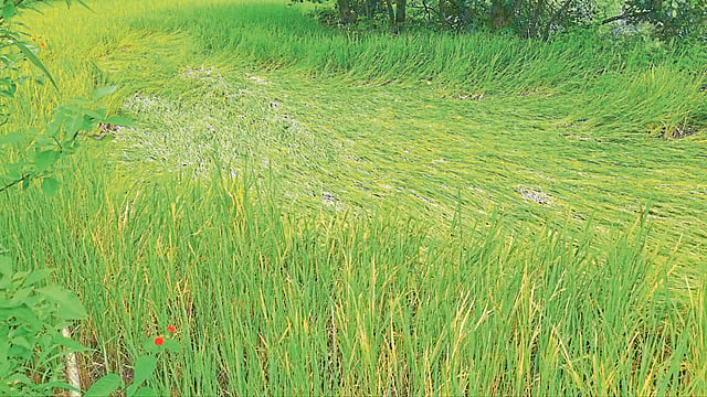 मात्र, रविवारी दुपारी दीड वाजता पावसास सुरुवात झाली. हलक्या पावसाच्या सरी पडत होत्या. रात्री उशिरापर्यंत पाऊस पडत होता. पाऊस पूर्ण थांबल्याशिवाय शेतकरी पुन्हा पिकांची काढणी करणार नाही. पावसामुळे कापणी केलेली पिके शेतात व काढणीसाठी शेतकरी व्यस्त असल्याने उन्हात वाळविण्यासाठी घातलेले धान्य भिजले. खरिपाची काढणी करता येत नाही व ढगाळ वातावरणामुळे काढलेले धान्य वाळविता येत नाही, अशा दुहेरी संकटात शेतकरी सापडला आहे.
