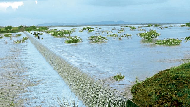 वडूज (जि. सातारा) : येरळवाडी मध्यम प्रकल्प पूर्णक्षमतेने भरला असून सांडव्यावरून पाणी वाहू लागले आहे. सलग तीन वर्षे हा तलाव पूर्णक्षमतेने भरत असून, तालुक्यातील जनता आनंदली आहे. तलावाच्या सांडव्यावरून पाणी वाहू लागल्याने तलाव परिसरात मच्छिमारीला उधाण आले आहे.