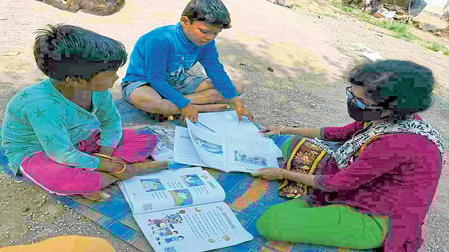 आंधळी तलावालगत असणाऱ्या बोडके गावांतर्गत पुनर्वसित माणगंगानगर गाव आहे. बहुतांश अशिक्षित व मोलमजुरी करून उदरनिर्वाह करणारे लोक तेथे राहतात. येथील विद्यार्थी शिक्षणापासून वंचित राहू नये म्हणून जिल्हा परिषदेची दोन शिक्षकी वस्तीशाळा आहे. अवघे 27 विद्यार्थी शिक्षण घेत असले तरी कुटुंबाची आर्थिक स्थिती नेहमीच अडसर ठरते. सध्याच्या कोरोना काळातही हीच परिस्थिती शिक्षणासाठी मैलाचा दगड बनला होता. शासनाने ऑनलाइन शिक्षणाची उपाययोजना केली असली तरी हातावर पोट असणाऱ्या कुटुंबांतील या वस्तीवरील मुलांना अँड्रॉइड मोबाईल मिळणार कुठून? हा प्रश्न होताच. परंतु, या मुलांचे शिक्षण थांबू नये यासाठी येथील शिक्षिका दयाराणी खरात यांनी स्वतःच पुढाकार घेतला अन् मग शाळाच थेट विद्यार्थ्यांच्या अंगणी आणली.