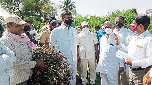 पावसाने नुकसान झालेल्या साजूर व साकुर्डी येथील भात, सोयाबीन, मका पिकांची पाहणी मंत्री देसाई यांनी थेट शेतकऱ्यांच्या बांधावर जाऊन केली. त्यानंतर ते बोलत होते. जिल्हा परिषद सदस्य प्रदीप पाटील, तहसीलदार अमरदीप वाकडे, गटविकास अधिकारी डॉ. आबासाहेब पवार, उपविभागीय कृषी अधिकारी दौलत चव्हाण, तालुका कृषी अधिकारी रियाज मुल्ला, मंडल अधिकारी पंडित पाटील, मंडल कृषी अधिकारी सुशांत भोसले, कृषी पर्यवेक्षक अशोक कोळेकर, हणमंतराव चव्हाण, साजूरचे सरपंच संदीप पाटील यांच्यासह तांबवे परिसरातील शेतकरी उपस्थित होते.