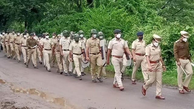 कुडाळ (सातारा) : आषाढी एकादशीच्या पार्श्वभूमीवर जावळी तालुक्यातील प्रतिपंढरपूर करहर (Pratipandharpur Karhar) येथे पोलीस संचालन करण्यात आले. मेढा पोलिसांनी (Medha Police) आषाढीच्या (Ashadi Ekadashi 2021) निमित्ताने, तसेच लॉकडाउनच्या (Corona Lockdown) नियमांचे उल्लंघन होऊ नये, यासाठी खबरदारीचा उपाय म्हणून पाचगणी रोडपासून विठ्ठल मंदिर परिसर, बाजारपेठ, खर्शी बारामुरे रोड ते आंबेघर फाटा अशा मार्गे पोलीस संचलन केले. (Police Security At Karhar Due To Ashadi Ekadashi bam92)