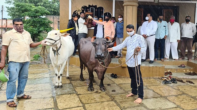 सातारा ः भारतीय जनता पक्षाच्या सातारा तालुका शाखेतर्फे क्षेत्र माहुली (ता. सातारा) येथे शेतकऱ्यांनी दुभत्या जनावरांसह पोस्ट कार्यालयात जाऊन मुख्यमंत्र्यांना पत्रे पाठवण्यात आली. दुधाला दर व दूध पावडर भुकटीला अनुदान मिळावे, या मागणीसाठी हे आंदोलन झाले.