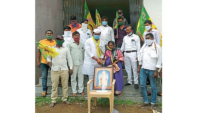 दहिवडी (जि. सातारा) : दुधाला लिटरला 35 रुपये भाव मिळावा, या मागणीसाठी राष्ट्रीय समाज पक्षातर्फे येथील तहसील कार्यालयासमोर विठ्ठलाच्या प्रतिमेला दुधाचा अभिषेक करून आंदोलन करण्यात आले.