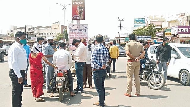 म्हसवड (जि. सातारा) : माण तालुक्यामध्ये विशेषतः दहिवडीसह इतर गावांतही कोरोना संसर्ग वाढून रुग्णसंख्येत वाढ झाल्यामुळे शासन आदेशानुसार येथील पालिकेने (बुधवार) आठवडी बाजार बंद ठेवला. दरम्यान, पालिकेचे मुख्याधिकारी डॉ. सचिन माने यांनी आपल्या सहकारी कर्मचाऱ्यांसह रस्त्यावर उतरून मास्क न लावणाऱ्यांना शोधून काढून प्रत्येकी 500 रुपये दंडाची कारवाई केली.
