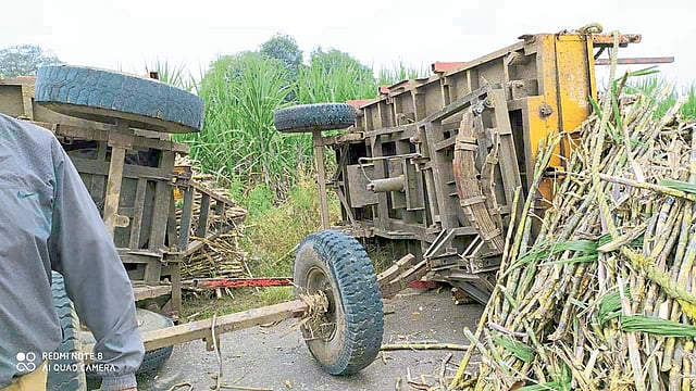 औंधवरून ऊस वाहतूक करणारा ट्रॅक्टर (क्र. एम. एच. 23 एच. 8631) हा घाटमाथ्याकडे चालला होता, तर कऱ्हाडहून औंधमार्गे सिद्धेश्वर कुरोलीला माल घेऊन टेम्पो (क्र. एम. एच. 11 एम. 4582) निघाला होता. नांदोशी पुलानजीक आल्यानंतर भरधाव वेगाने आलेल्या ट्रॅक्टरने सरळ टेम्पोला धडक दिली. त्याचवेळी उसाने भरलेल्या दोन्ही ट्रॉली पलटी झाल्या.