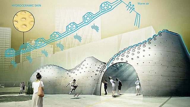 या वास्तुविशारदांनी"हायड्रोजेल'चा वापर करून वातावरण थंड करण्याची नवी पद्धत शोधली आहे. यामध्ये त्यांनी हायड्रोजेल वापरून आर्द्रता शोषून मानवी त्वचेसारखा "घाम' येऊ शकणारी भिंत तयार केली आहे. हायड्रोजेल पाणी शोषून त्याच्या आकाराच्या पाचशे पट अधिक मोठे होऊ शकत असल्याने या तंत्रज्ञानासाठी अधिक उपयुक्त ठरले आहे.