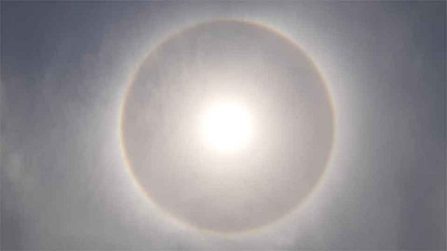 कोल्हापूर - येथे बुधवारी दुपारी साडेबाराच्या सुमारास सूर्याभोवती खळे तयार झालेले पाहायला मिळाले. याबाबत अनेक तर्क-वितर्क काल सोशल मिडियावर चर्चिले जात होते. तज्ज्ञाचे मते हा आॅप्टिकल प्रिझमचा हा प्रकार आहे.