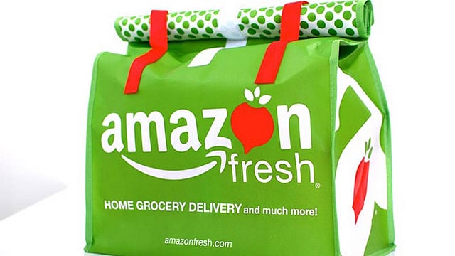 ऍमेझॉनची सेवा मात्र गुगलपेक्षा वेगळी आहे. एक मुख्य फरक म्हणजे ऍमेझॉन इतर दुकानातून वस्तू उचलून आणून तुमच्या घरी पोचत्या करत नाही, ऍमेझॉन स्वतः या गोष्टी विकते. त्यामुळे त्या वस्तूंची ऍमेझॉनवरील किंमत तुम्हाला द्यावी लागते. ऍमेझॉन या सेवेला "फ्रेश ऍडऑन' असे म्हणते. ऍमेझॉनची ही सेवा वापरण्यासाठी तुमच्याकडे ऍमेझॉनचे प्राइम सदस्यत्व असणे आवश्यक आहे. एका वृत्ताप्रमाणे अमेरिकेतील अर्ध्याअधिक घरांकडे आधीच हे सदस्यत्व असल्याने तो मोठा प्रश्न नाही. प्राइम सदस्यत्वात तुम्हाला ऍमेझॉनवरून मागवलेल्या इतर गोष्टी विनाशुल्क दोन दिवसात तुमच्या घरी येतात. प्राइम मेंबरशिप असणाऱ्यांना ऍमेझॉनची व्हिडीओ सर्व्हिसही विनाशुल्क मिळते. प्राइम सदस्यत्वाचा आणि किराणा माल मागवण्याचा तसा काहीच संबंध नाही, पण ज्यांच्याकडे प्राइम सदस्यत्व नाही त्यांना किराणा माल सेवा वापरता येत नाही. इथे किराणा माल म्हणजे दूध, फळे, भाज्या, पाव व इतर खाण्याच्या गोष्टी (बहुतेक नाशवंत गोष्टी) मला अपेक्षित आहेत. डिटर्जंट पावडर, बेबी डायपर अशा नाशवंत नसलेल्या गोष्टी तुम्हाला सर्वसाधारण प्राइम मेंबरशिपवर ऍमेझॉनकडून दोन दिवसांत मागवता येतात. किराणा माल सेवा वापरण्यासाठी प्राइम सदस्यांना दरमाही 15 डॉलर्स अधिक द्यावे लागतात. म्हणजेच ऍमेझॉनची ही सेवा वापरण्यासाठी तुम्हाला एकूण प्राइम मेंबरशिपचे वर्षाचे 99 डॉलर्स व फ्रेश सेवेचे 180 डॉलर्स खर्च येतो. ज्या वेळी या सेवेतून तुम्ही सामान मागवाल तेव्हा ते 40 डॉलर्सच्या वर नसेल तर मात्र तुम्हाला तब्बल दहा डॉलर्सचे शुल्क भरावे लागते! त्यामुळे एकंदरीतच ही सेवा गुगलपेक्षा बरीच महाग आहे. ही सेवा सध्या सिएटल, उत्तर व दक्षिण कॅलिफोर्निया, न्यूयॉर्क, न्यूजर्सी, फिलाडेल्फिया, बाल्टीमोर, बॉस्टन इत्यादी शहरात उपलब्ध आहे.