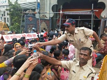 या भाविकांसाठी मंदिर ट्रस्टकडून पिण्याच्या पाण्याचीही व्यवस्था करण्यात आलेली नाही. त्यामुळे भर उन्हात महिला भाविकांना तहानेवाचून ताटकळत थांबावे लागते. ही बाब मुंबई नाका पोलीस ठाण्याचे वरिष्ठ पोलीस निरीक्षक विजय डमाळ यांच्या लक्षात आली आणि त्यांनी तात्काळ पाण्याच्या बाटल्यांचे बॉक्स मागविले आणि भर उन्हामध्ये दर्शनरांगेत थांबलेल्या महिला भाविकांना पाण्याच्या बाटल्यांचे वाटप करीत त्यांची तहान भागविली. पोलिसांच्या या कृत्याचा महिला भाविकांकडून कौतूक होते आहे.