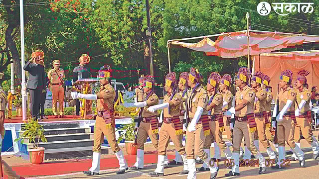 जिल्हा पोलिस दल, राज्य राखीव पोलिस बल गट क्रमाक ६, राज्य आपत्ती प्रतिसाद दल, जिल्हा पोलिस दल (पुरुष), जिल्हा पोलिस दल (महिला), पोलिस प्रशिक्षण केंद्र, होमगार्ड, श्वानपथक, फॉरेन्सिक व्हॅन, चलचित्र वाहन, वैद्यकीय पथक आदींचे संचलन झाले. त्याचे नेतृत्व पोलिस निरीक्षक मुकेश माहुले यांनी केले. आकाशवाणीच्या पूनम बेडसे, जिल्हा आपत्ती व्यवस्थापन अधिकारी जितेंद्र सोनवणे यांनी सूत्रसंचालन केले.