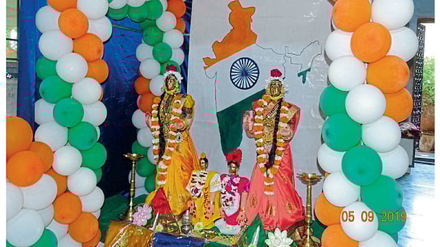 गणेशोत्सव2019 : जळगाव - विद्युतनगर भागातील संत कुटुंबीय सुमारे वीस वर्षांपासून गौरींची स्थापना करीत आहे. दरवर्षी गौरी गणपतीच्या स्थापनसोबतच विविध आरास साकारली जाते. यंदा संत कुटुंबीयांकडून भारतमातेची आरास साकारण्यात आली असून, आरसमधून देशाप्रती कृतज्ञता व्यक्त करण्यात आली आहे.