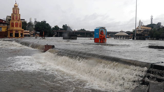 नाशिक ः मुसळधार पर्जन्यवृष्टीमुळे गोदावरीसह दारणा, वालदेवी, वाघाडी, नासर्डी आणि सिन्नर तालुक्यातील म्हाळुंगी व सुरगाणा तालुक्यातील नार, दमणगंगा नदी खळाळून वाहू लागली आहे. आदिवासी पट्यात 18 तासांपासून जोरदार पाऊस हजेरी लावत असून हवामान विभागाच्या अतिवृष्टीच्या शक्यतेने गोदाकाठी अतिदक्षतेचा इशारा प्रशासनातर्फे देण्यात आला आहे. गोदाकाठच्या काझीगढीवरील 35 कुटुंबांना स्थलांतरीत करण्यात आले आहे. त्र्यंबकेश्वर शहरामध्ये पाणी शिरल्याने पूरपरिस्थिती तयार झाली आहे.