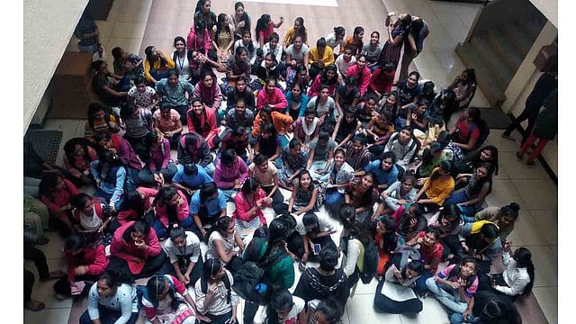 महाविद्यालयातील वसतीगृहात अडीशे ते, तीनशे विद्यार्थींनी वास्तव्यास आहेत. वसतीगृहातील विवीध समस्या आणि खासकरुन जेवणाच्या वारंवार तक्रारी करुनही उपाय योजना होत नाही. म्हणून आज चक्क दिडशेच्यावर विद्यार्थीनींनी जेवणावर बहिष्कार टाकत आंदोलन पुकारले. सकाळच्या जेवणाच्या वेळेस शंभर ते दिडशे तरुणी मेसमध्ये जेवणाला आल्या असतांना वाढलेल्या वांग्याच्या भाजीत अळ्या आणि वरणभातात किडे आढळून आल्याने विद्यार्थींनीच्या संतापाचा पारा वर चढला. मेसचालक चालकाला जाब विचारात या विद्यार्थींनी आवारातच अंदोलनाचा पावित्रा घेवून ठिय्या मांडला. चार मजली वसतीगृह आवारातच मुलींनी उभारलेल्या आंदोलनामुळे महाविद्यालयीन प्रशासन अचानक खडबळून जागे झाले. वसतीगृहाच्या रेक्टर कुमोदिनी पाटील यांनी तत्काळ मेस बंद करण्याच्या सुचना दिल्या.