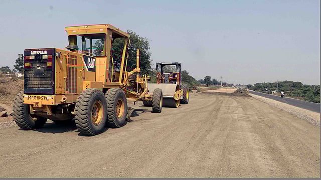 - पिंपळकोठ्याच्या अलीकडे : लेव्हल करण्याचे यंत्र, जेसीबी बंद स्थितीत