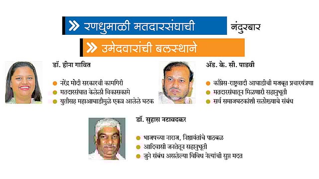 नंदुरबार मतदारसंघातील लढत काँग्रेसचे ॲड. के. सी. पाडवी आणि भाजपच्या डॉ. हीना गावित यांच्यात असली तरी तिला अंतर्गत अनेक पदर आणि नाराजीची झालर आहे. त्यातच भाजपचे निष्ठावंत, संघ परिवाराचे विश्वासू डॉ. सुहास नटावदकर यांनी अपक्ष म्हणून उडी घेतल्याने भाजप आणि काँग्रेसमधील एकसंधतेची कसोटी पाहणारी, चुरस आणि विजयाची समीकरणे गुंतागुंतीची करणारी ही निवडणूक असेल.
