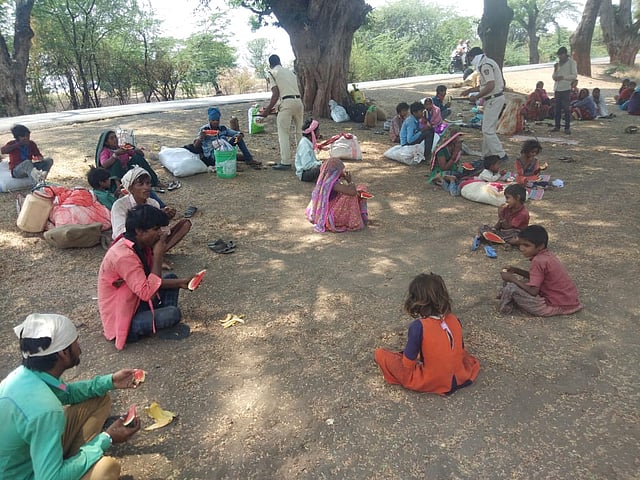 लॉकडाऊनच्या काळात कुणाला कोरोनाचा संसर्ग होवू नये; म्हणून नागरीकांना घरातच थांबण्यासाठी दिवसरात्र तहानभूक विसरून आपले कर्तव्य बजावत असतांना गरीब मजुरांच्या वेदनेलाही फुंकर घालत मेहूणबारे पोलीसांनी इतरांपुढे मोठा आदर्श ठेवला आहे. पोलीसांच्या रूपानेच देव धावून आल्याने या गरीब आदिवांसींच्या डोळ्यात आनंदाश्रू टपकले. मजल दरमजल करीत हे मजुरांनी आज दुपारी अकरा वाजता भोरस शिवार ओलंडले. चालण्याचे त्राण नाही, पोटात अन्नाचा कण नाही अशा स्थितीतही ते अंग भाजून काढणाऱ्या उन्हात रस्ता कापत होते.
