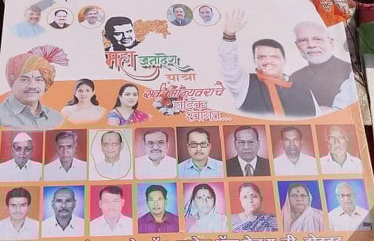 बोदवड : मुख्यमंत्री देवेंद्र फडणवीस यांच्या महाजनादेश यात्रेचे शहरात उद्या (ता. २४) आगमन होणार आहे. या पार्श्वभूमीवर बोदवड तालुका भाजपतर्फे स्थानिक स्वराज्य संस्थांकडून मुख्यमंत्र्यांचे स्वागतपर फलक शहरात जागोजागी लावले जात असून, यात राष्ट्रवादी कॉंग्रेसचे जिल्हाध्यक्ष ॲड. रवींद्र पाटील यांचा फोटो छापून आल्याने एकच खळबळ उडाली आहे.