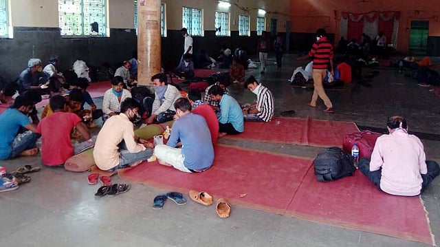 जिल्हाधिकाऱ्यांच्या आदेशान्वये मंगल कार्यालये अधिग्रहीत करून परगावी जाणाऱ्या कामगारांची राहण्याची सोय केली आहे. काही सामाजिक संस्थांनी त्यांना भोजन दिले, अंघोळीचे कीट दिले. कामगारांची बाहेर न पडता तेथेच राहावे यासाठी कामगारांचे प्रबोधन करीत आहेत.