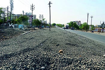 शहरात अनेक ठिकाणी महामार्गाच्या कामासाठी रस्ता खोदून ठेवला आहे. काही ठिकाणी खडी पसरवून ठेवली तर काही ठिकाणी खडीचे ढिग साचले आहेत. यामुळे महामार्गावरील रस्ता अधिकच अरुंद झाला आहे. पावसाळ्यात अनेक ठिकाणी पाणी साचून महामार्गावर वाहतुकीची कोंडी होणार आहे. एक जूनपासून किमान पर्यायी मजूर घेऊन झांडू कन्ट्रक्शनला काम पूर्ण करण्याची ताकीद देण्याची मागणी होत आहे.