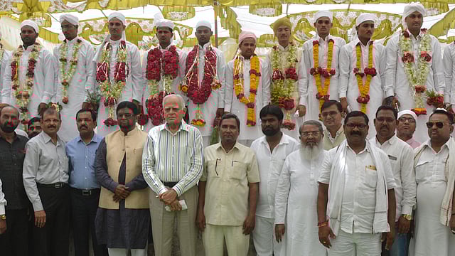 जळगाव ः जिल्हा मन्सुरी पिंजारी बिरादरीतर्फे सामुहिक विवाह सोहळ्याचे आयोजन करण्यात आले होते. या सोहळ्यात समाजातील तेरा जण विवाह बंधानात अडकले. खानदेश सेंट्रल परिसरात पार पडलेल्या सोहळ्यात खासदार ए. टी. नाना पाटील, माजी मंत्री सुरेशदादा जैन, हाजी गफ्फार मलिक, करीम सालार, माजी महापौर नितीन लढ्ढा, इकबाल पिरजादे, शरीफ सरदार, संतोष पाटील, अख्तर पिंजारी, गनी मेमन, असलम पिंजारी यांची प्रमुख उपस्थिती होती. सोहळ्यासाठी महाराष्ट्रासह मध्यप्रदेश, गुजरात येथील जोडप्यांची उपस्थिती होती. सामुहिक विवाहाच्या निकाह पठण मौलाना जुबेर यांनी केली. त्यांच्यासोबत मौलाना इदू, मौलाना असगर हे होते.
