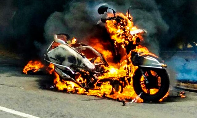 चौगुले प्लॉट भागात आशिष कैलास तिवारी (वय 27) कुटुंबीयांसह वास्तव्यास आहेत. त्यांची दुचाकी सुझुकी एक्सेस (स्कुटी क्रमांक : एमएच 19, एडब्लू 2399) मारुती मंदिराजवळील त्यांच्या घराबाहेर उभी होती. पहाटे एकच्या सुमारास स्फोटाचा आवाज आल्याने तिवारी कुटुंबीयांनी घराबाहेर येऊन बघितले असता घराबाहेर उभी स्कुटी पेटत होती. कुटुंबीयांसह शेजाऱ्यांनी धाव घेत पाण्याचा मारा करून आग विझविली. याप्रकरणी आशिष तिवारी यांच्या तक्रारीवरून शनिपेठ पोलिसांत गुन्हा दाखल करण्यात आला आहे. शहरात वाहने पेटविण्याच्या प्रकारामुळे मोठ्या दुर्घटनेची शक्यता वर्तवली जात असून, पोलिसांनी कठोर कारवाई करावी, अशी अपेक्षा व्यक्त होत आहे.