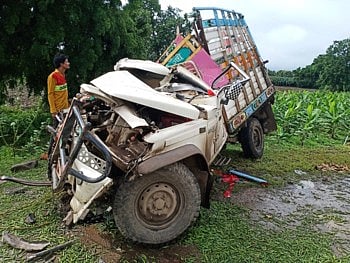 ब्राम्हणपुरी : शहादा खेतीया रस्त्यावर ब्राम्हणपुरी गावाजवळ आयशर ट्रक (Truk) ओव्हरटेक करीत असतांना समोरुन येणाऱ्या पिकप (Pikup Van) गाडीस जोरदार धडक (Accident) दिली. यात एक जागीच ठार (Death) तर दोन जण गंभीर जखमी झाले. जखमींना तात्काळ ग्रामस्थांनी म्हसावद येथील ग्रामीण रुग्णालयात उपचारासाठी दाखल करण्यात आले. शुक्रवारी रात्री साडेदहा वाजेच्या सुमारास ब्राह्मणपुरी (ता. शहादा) गावानजीक हा अपघात घडला. अपघातात दोन्ही गाड्यांचे मोठ्या प्रमाणावर नुकसान झाले आहे.