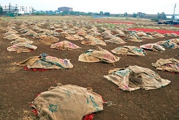 नंदुरबार : जिल्ह्यात आज दुसऱ्या दिवशी सूर्य दर्शन झाले नाही. दिवसभर पावसाची रिपरिप सुरू होती. तापमानाचा पारा २१ अंशावर आला होता. वातावरणात दिवसभर गारठा होता. दरम्यान, पावसाच्या रिपरिपीमुळे मिरची व्यापाऱ्यांची पथारीवर असलेली मिरची ओली झाली, तर काहींनी गोणपाट झाकून वाचविण्याचा प्रयत्न केला. ढगाळ व पावसाळी वातावरण लक्षात घेता बाजार समितीने १४ डिसेंबरपर्यंत व्यवहार बंद ठेवले आहेत.
