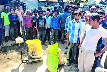 आडगाव येथील रेशन दुकानदार पी. एस. रावताळे यांनी आज सकाळी धान्य वाटप करण्यास सुरुवात केली असता लाभार्थ्यांना दिलेले धान्य लाभार्थी घरी घेऊन जात होती. त्यातील एक लाभार्थ्याने घरी धान्य मोजले असता प्रत्येक धान्यामागे किमान २ किलो धान्य कमी निघाल्याने एकच गोंधळ निर्माण झाला. या वेळी ग्रामस्थ हे धान्य वाटप होत असलेल्या ठिकाणी जाऊन तेथेच लागलीच मोजणी झालेले धान्य तपासले असता लाभार्थी युवराज जऱ्या वाघ याला वीस किलो तांदूळ दिले होते. ते पुन्हा मोजले असता १८ किलो आठशे ग्रॅम एवढे भरले. तसेच १० किलो गहू हे ८ किलो आठशे ग्रॅम एवढेच निघाले. दिवाण सुकऱ्या खर्डे यांनीही १६ किलो तांदूळ घेतले होते. ते १४ किलो सातशे ग्रॅम एवढेच भरले. विशेषतः हे सर्व धान्य त्याच रेशन दुकानात जाऊन त्याचाच वजन काट्यावर मोजण्यात आले. या संबंधी गावकऱ्यांनी संतप्त भावना व्यक्त करीत दुकानाजवळ एकच गर्दी केली होती. रेशन दुकानदार पोस मशिनातील पावत्याही देत नसल्याचे गावकऱ्यांनी सांगितले. फेर मोजणी केलेल्या व कमी भरलेले धान्य व वजन काटा गावकऱ्यांनी ताब्यात घेऊन ग्रामपंचायतीच्या खोलीत टाळे बंद केले आहे. वरिष्ठ अधिकारी आल्यावर त्यांना दाखवू ,असा पवित्रा घेतला आहे. ऐन होळीच्या उत्सववेळी या आदिवासी भागात सर्व कुटुंबे जमतात व उत्सव साजरा करतात. शासनाच्या मदतीचा जर कोणी असा डल्ला मारत असेल तर त्याहून दुर्भाग्य ते काय, अशा भावना ग्रामस्थांनी व्यक्त केल्या. यावेळी उपसरपंच परशुराम सुकराम ठाकरे ,मोतिसिंग जयराम खर्डे, मुडसिंग डुंमऱ्या ठाकरे, सुनील उदेसिंग वाघ, राजाराम नारायण रावताळे,अजय सुरमल ठाकरे, सरपंच नुराबाई मोहन पवार आदी उपस्थित होते.
