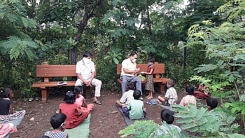 खापर ः हल्ली कोरोनामुळे लॉकडाउन सुरू असल्याने सरकारी आदेशाने शिक्षक वर्ग विद्यार्थांना ऑनलाइन व ऑफलाइन पद्धतीने शिकवत आहेत. खापर केंद्रातील जिल्हा परिषद शाळा उदेपूर (खालचे) ता. अक्कलकुवा येथील मुख्याध्यापक मोगीलाल चौधरी व त्यांचे सहकारी जोलंमा वसावे यांनी शाळेतच ‘बागेतील शाळा’ हा उपक्रम सुरू केला आहे. आठवड्यातून दोन दिवस शिक्षक हा नवोपक्रम राबवत असल्याने विद्यार्थी आनंदाने सहभागी होत आहेत.