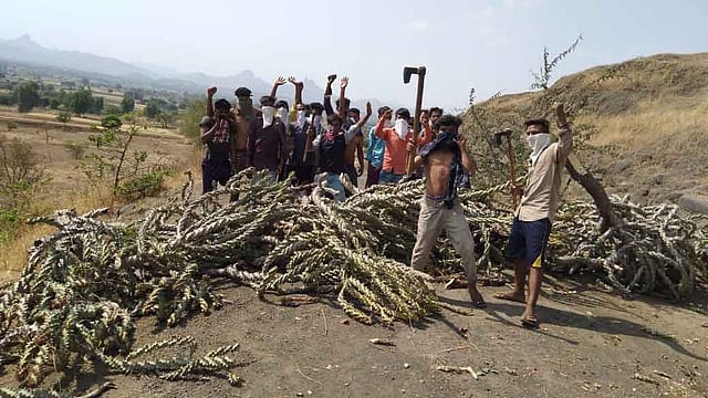 तरूणांनी रस्त्यावर साबर तोडून आडवी करून गाव बंदी केली